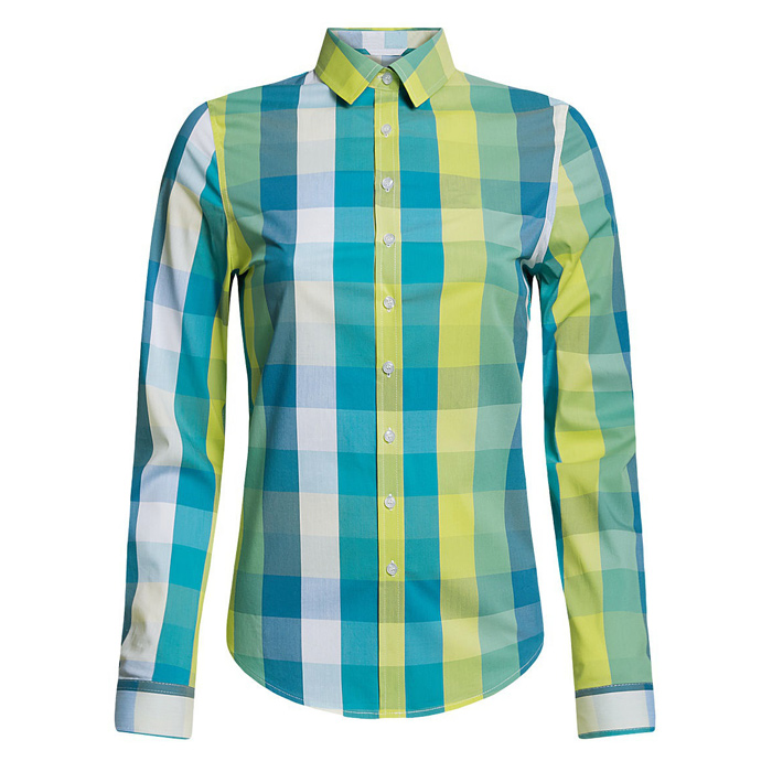 Рубашка в клетку для тех, кто любит дополнять образ стильными деталями. Свободный крой, солнечный принт и натуральный хлопок. Воротник-стойка, манжеты на пуговицах и длинный рукав. Яркий акцент в casual-образе.